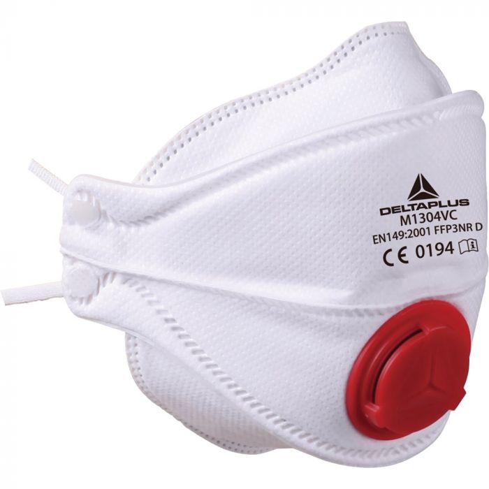 DELTAPLUS DOOS MET 10 WEGWERP HALFGELAATSMASKERS FFP3 UIT GEVOUWEN DELEN EN VENTIEL