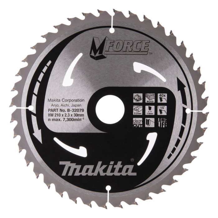 Nieuwe generatie Mforce cirkelzaagblad met vernieuwd tanddesign. Uitermate geschikt voor: zachthout/overlangs en afkorten, geplastificeerd en gefineerd hout, meubelplaat, hardhout/overlangs en afkorten.Geschikt voor: zachthout/fijn afkorten, OSB, duplex-, triplex- en multiplexhout. De tanden zijn voorzien van een dubbele snijhoek van 15 graden wat een agressieve en snelle zaagsnede garandeert. De M-vormige, dubbelsnijdende tand zorgt ervoor dat een afwerking van een 80-tands blad wordt bereikt met een 40-tands blad.