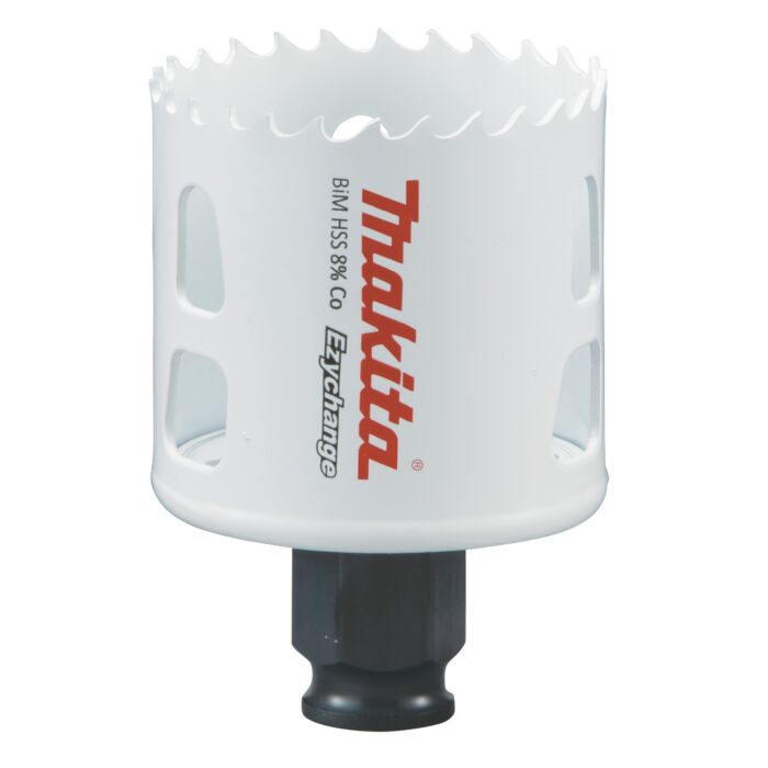 Makita snelwissel gatzaag bi-metaal in diameter 51mm. Door de toevoeging van een 4mm HSS-Co vertanding op de HCS gatzaag is het mogelijk met de gatzaag gaten tot 44mm diepte te realiseren. Het Ezychange snelwisselsysteem maakt het mogelijk snel en eenvoudig naar gatzagen met een andere diameter te wisselen. De grote gaten aan de zijkant zorgen daarnaast voor een efficiënte afvoer van afvalmaterialen.
